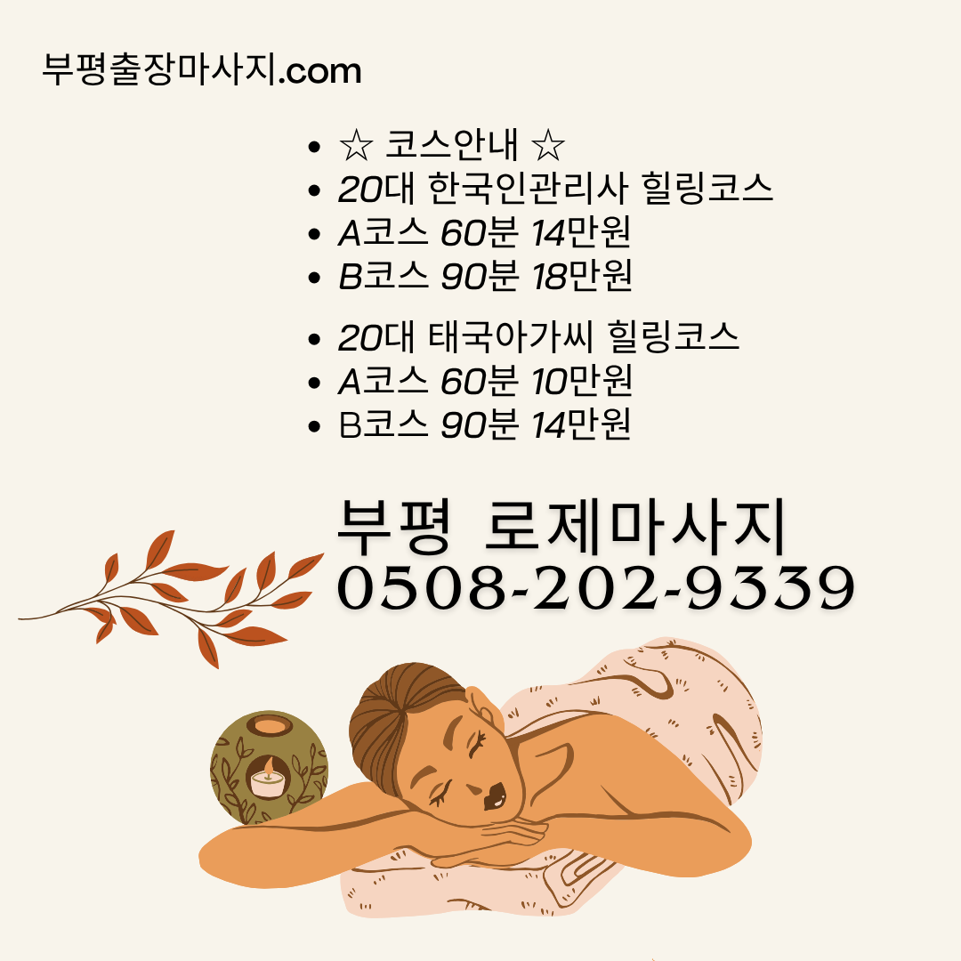 부평출장마사지.com “로제 마사지”인천 부평 전지역 출장 프리미엄 힐링 케어인천 부평 전역 어디든 빠르게 방문하는 전문 출장 힐링 서비스입니다.숙련된 관리사와 체계적인…